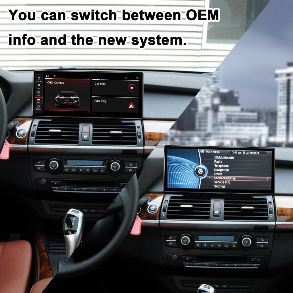 PEMP (9625) Ultra-Thin 12.3" Linux Screen, for BMW X5 E70 E71 CIC Wireless and Wired CarPlay Android Auto Calls Using The OEM Microphone Monitor