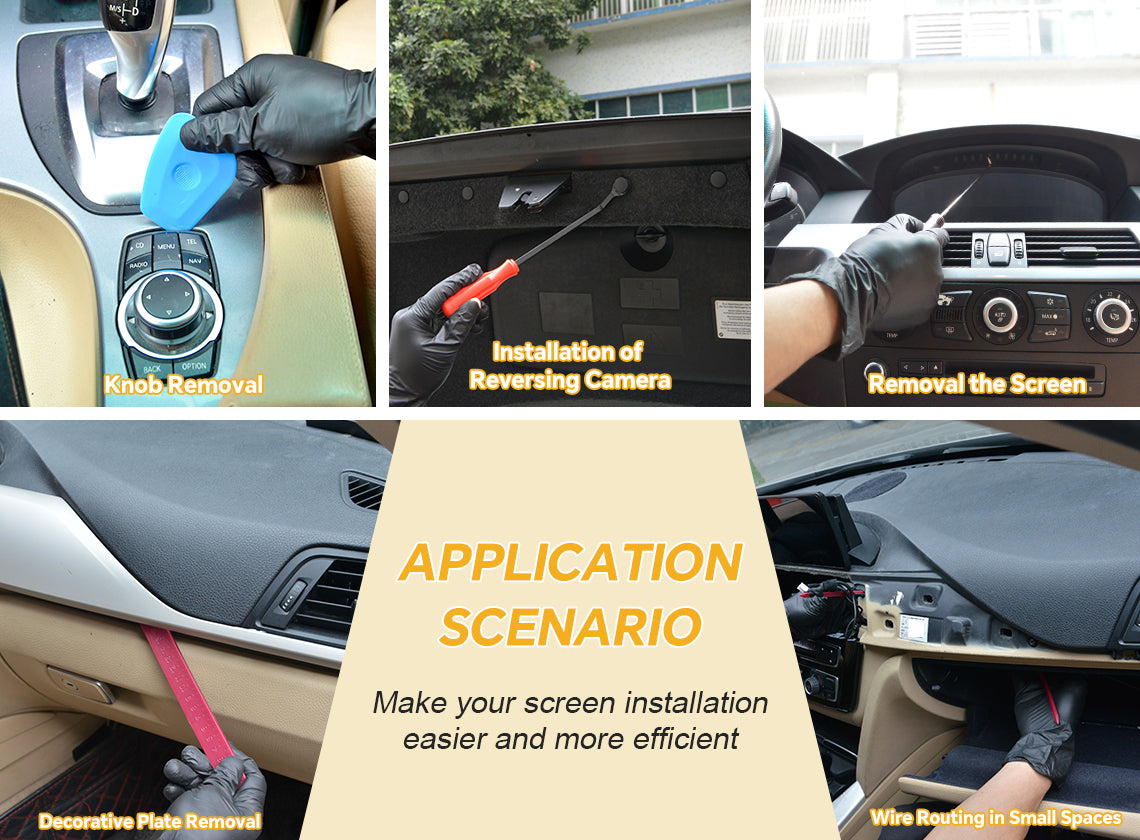 • [Multi-functional] This all-inclusive tool set provides a full range of screen upgrade tools, one single kit meets all your needs for the disassembly and installation of interior trim, car screen, radio head unit, reverse camera as well as cable routing in narrow/tight gaps.