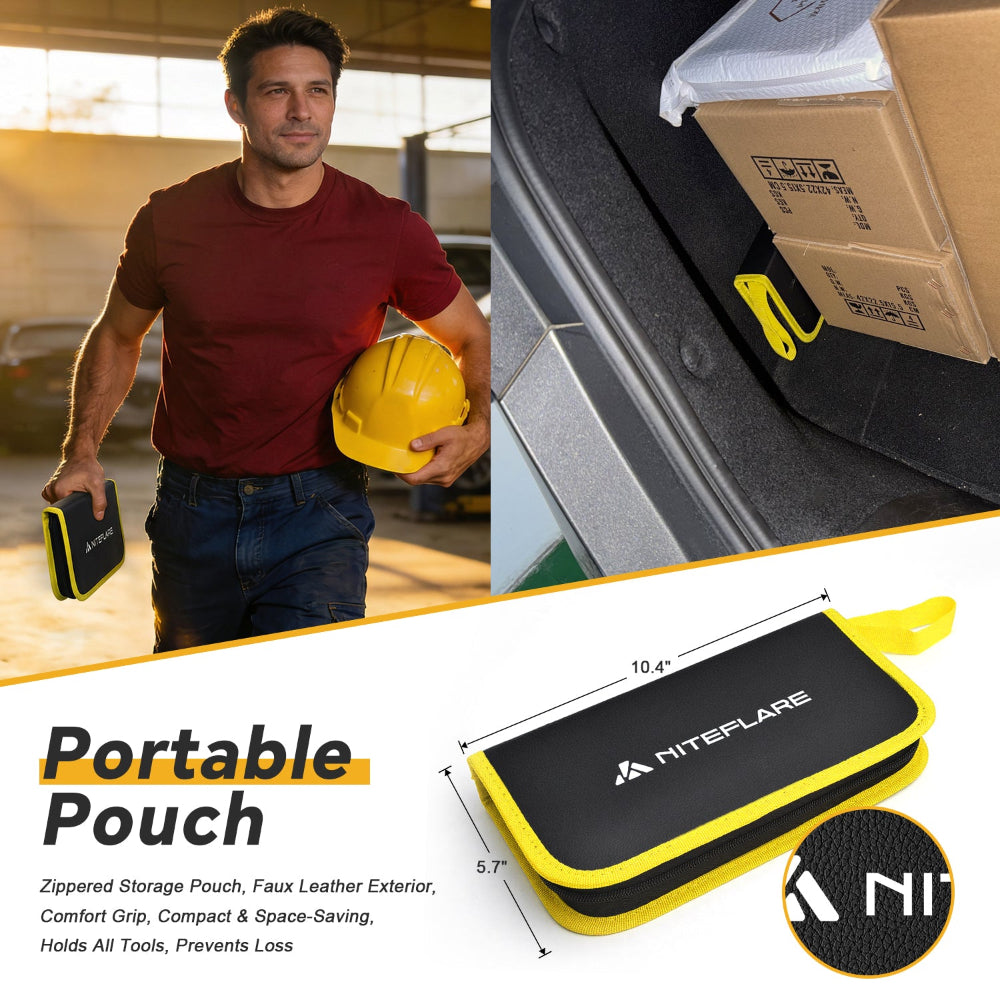 • [Portable] Comes with a zippered portable storage pouch featuring a faux leather exterior for a premium hand feel. It neatly stores all tools after use and effectively prevents loss.