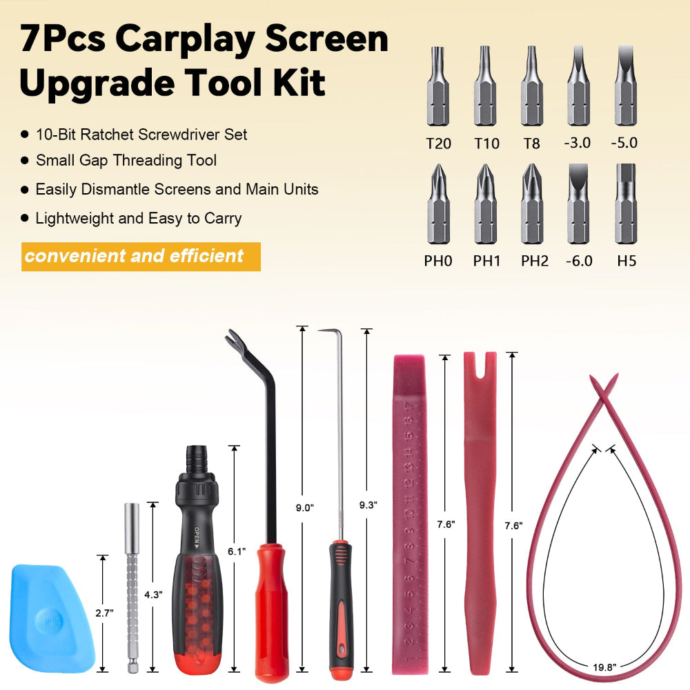 • [7 Pcs]7 Pieces of the Most Commonly Used Carplay Screen Upgrade Tools, Making Your Carplay Screen Installation More Time-efficient and Worry-free.