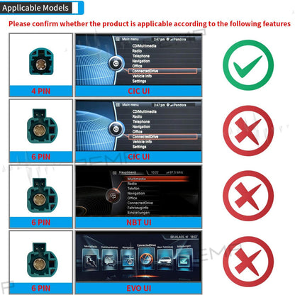 5. [Important] This one can not work with the F06 F12 CIC, Please connect CANBUS at the knob, if your knob is 4PIN, please use 4PIN adaptor harness. If your knob is 10PIN. Please use the 10PIN adaptor harness.