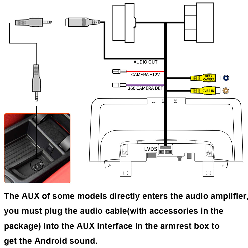 If you have properly adapted the fiber optic harness and selected the AUX menu in the OEM interface, you still can't get CarPlay or Android auto sound. Be sure to connect the audio cable between the armrest box AUX IN and AUDIO OUT.