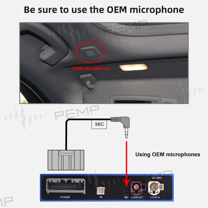 Connect The Oem Bluetooth With The Mmi Bluetooth At DC_AUDIO_BT... 1. You need use the OEM bluetooth to search PEMP mmi box's bluetooth transmitter: DC_AUDIO_BT... After successful connection, you will get the MMI box sound. 2. Using the OEM Microphone, you will get a clear call effect under Carplay or Android auto.