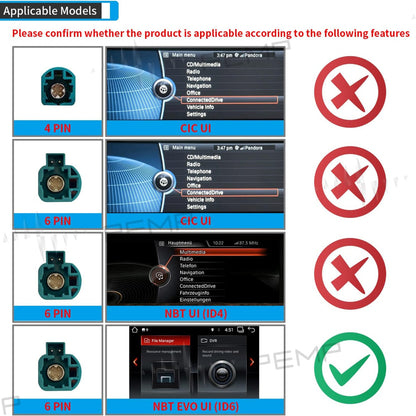 1. Model Year: MMI Box for BMW 1 Series F20(2018-2019), 3 Series F30 (2018-2019), 5 Series G30 (2018-2019), 7 Series G11(2016-2019), X1 F48 (2019-2020), X3 G01 (2018-2019), X5 F15 (2017-2019) EVOsystem.