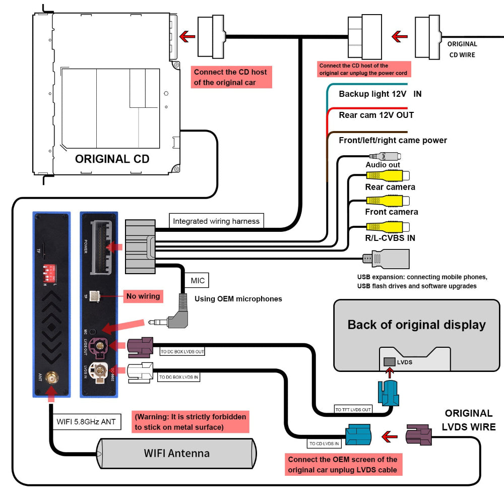 5. Special Note: When your car's OEM touchscreen has touch function, the touch function cannot be used with MMI Box'smenu. Also, the reverse camera only supports CVBS camera input.