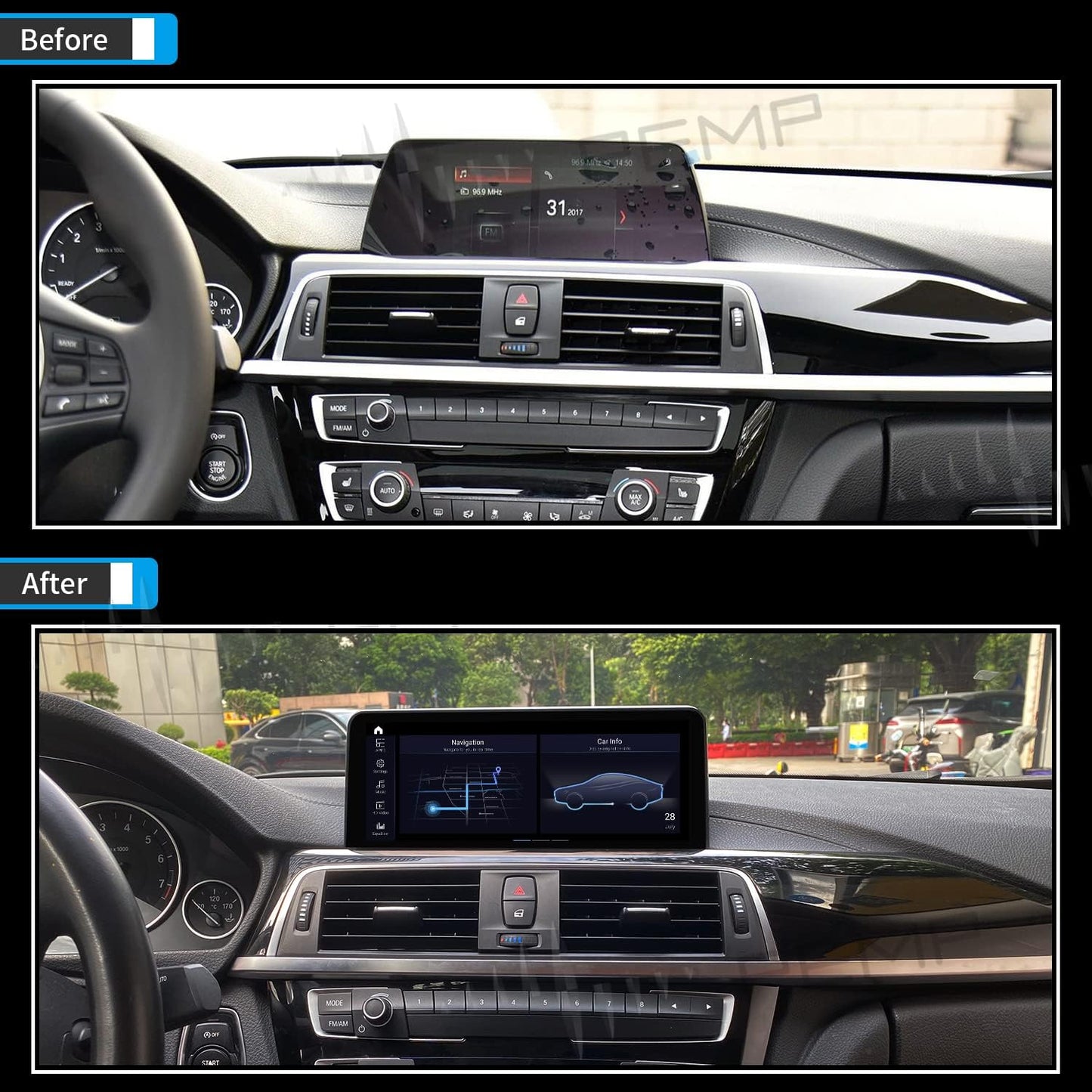 PEMP (5513) for BMW F30/F36 EVO Android 14 10.25" 1920x720 Screen, Snapdragon 680 8core CarPlay Android Auto Monitor, for BMW 3/4 Series (2017-2019) EVO ID6