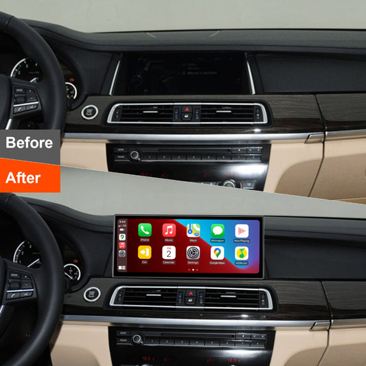 PEMP (5657) Ultra-Thin 12.3" Qualcomm Snapdragon 680 8 Cores Android Screen, for BMW 7 Series F01 F02 CIC Android 14 Wireless and Wired CarPlay Android Auto Calls Using The OEM Microphone Monitor(2009-2012)