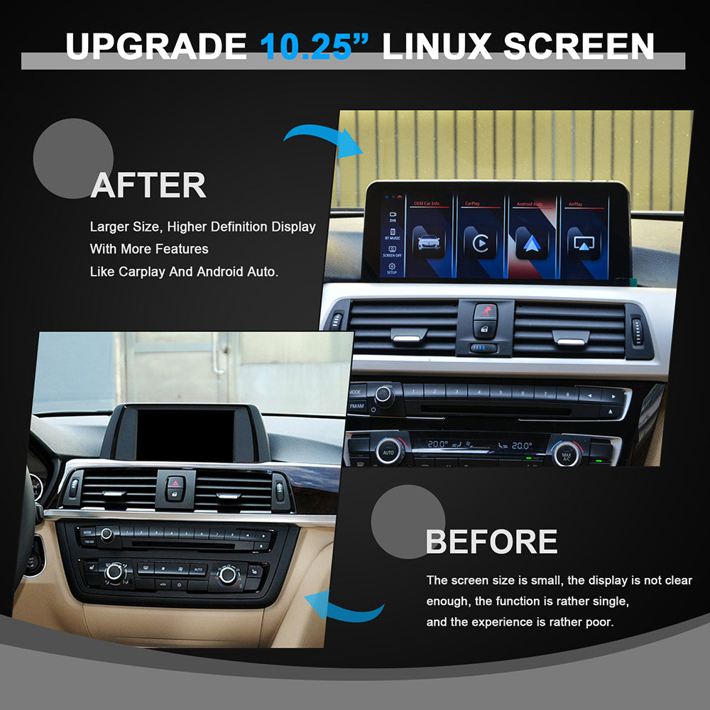 This product is only suitable for BMW EVO system. There is a 6PIN LVDS at the back of the OEM screen. It does not support CIC 4PIN and NBT system. If you buy the wrong system, you will not be able to install it.