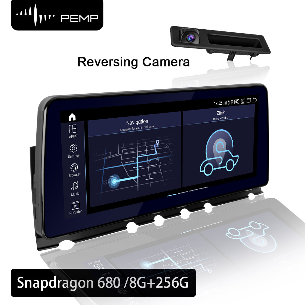 PEMP (5367) for BMW 7 Series F01 F02 NBT Vertical Android 14 Blue Anti-Glare Screen, IPS 12.3" HD Snapdragon 680 8core CarPlay Android auto Multimedia Player (2013-2015)