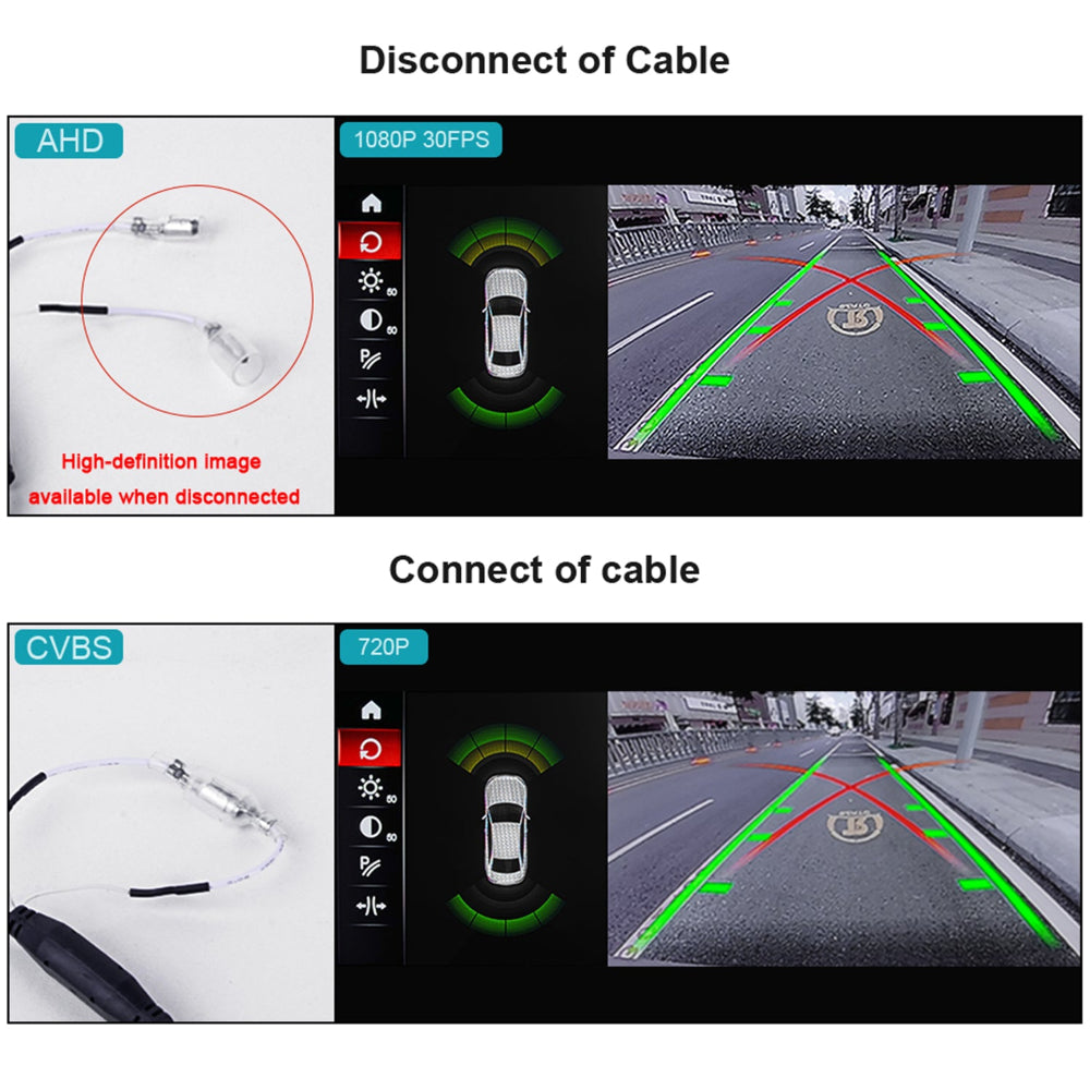 1.When you disconnect, it is 1080P 30FPS HD format. This must be supported by your Android screen. 2.When you connect the plug, it is 480P normal format. Most Android screens support this format.