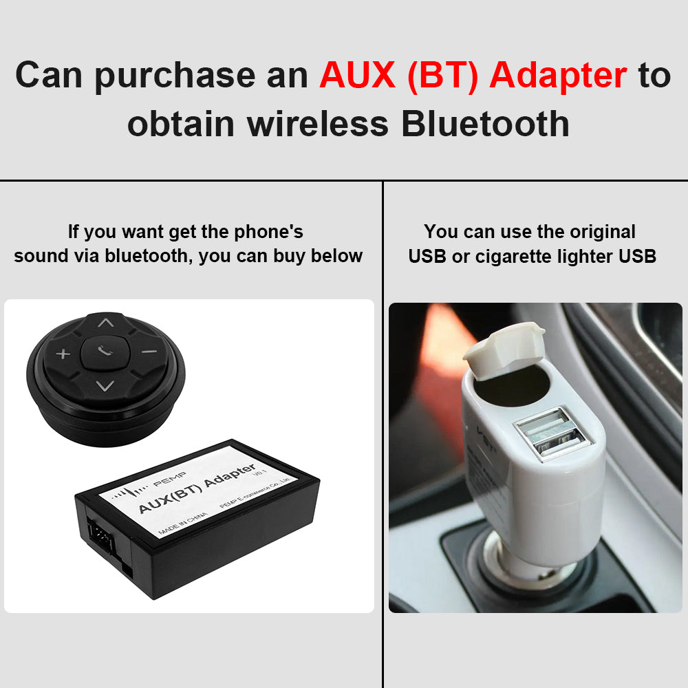 When your get the OEM aux menu, if you want get the phone's sound via bluetooth , you can buy the ASIN: B0BBF973NP Step 1. Connect the 3.5mm headphone plug male connector to the activator female connector; Step 2. Open the OEM aux menu; Step 3. Connect the phone Bluetooth according to the Bluetooth AUX box ASIN: B0BBF973NP instructions, you can get the sound of your phone.