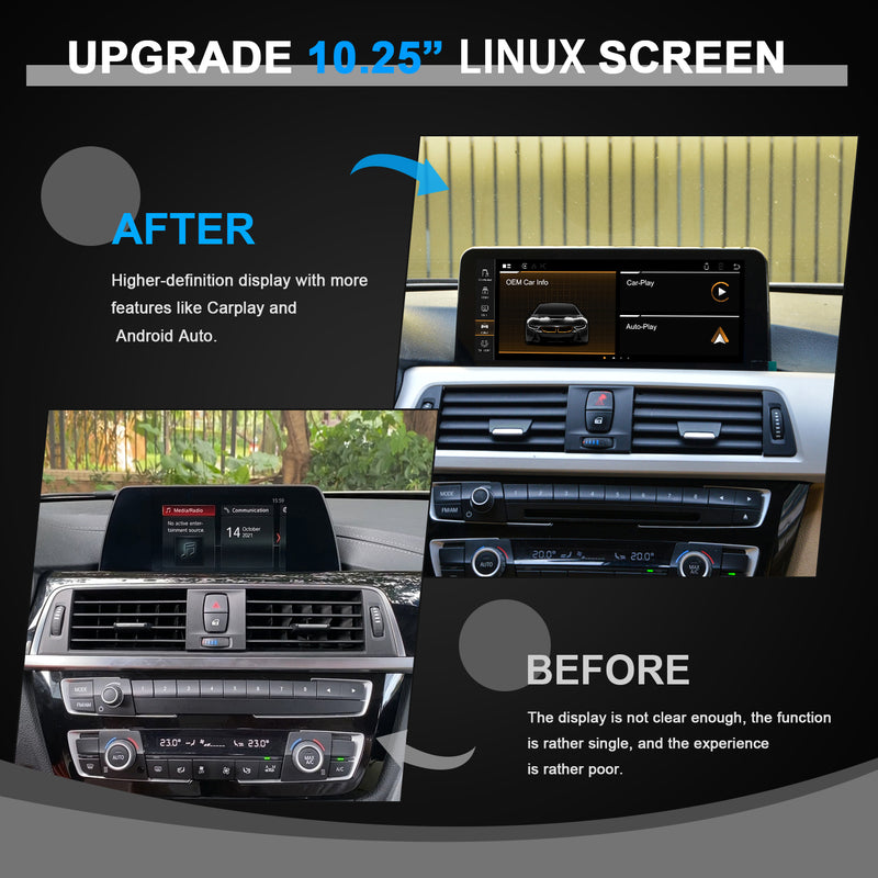 This product is only suitable for BMW EVO system. There is a 6PIN LVDS at the back of the OEM screen. It does not support CIC 4PIN and NBT system. If you buy the wrong system, you will not be able to install it.