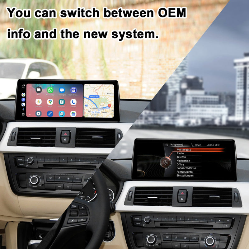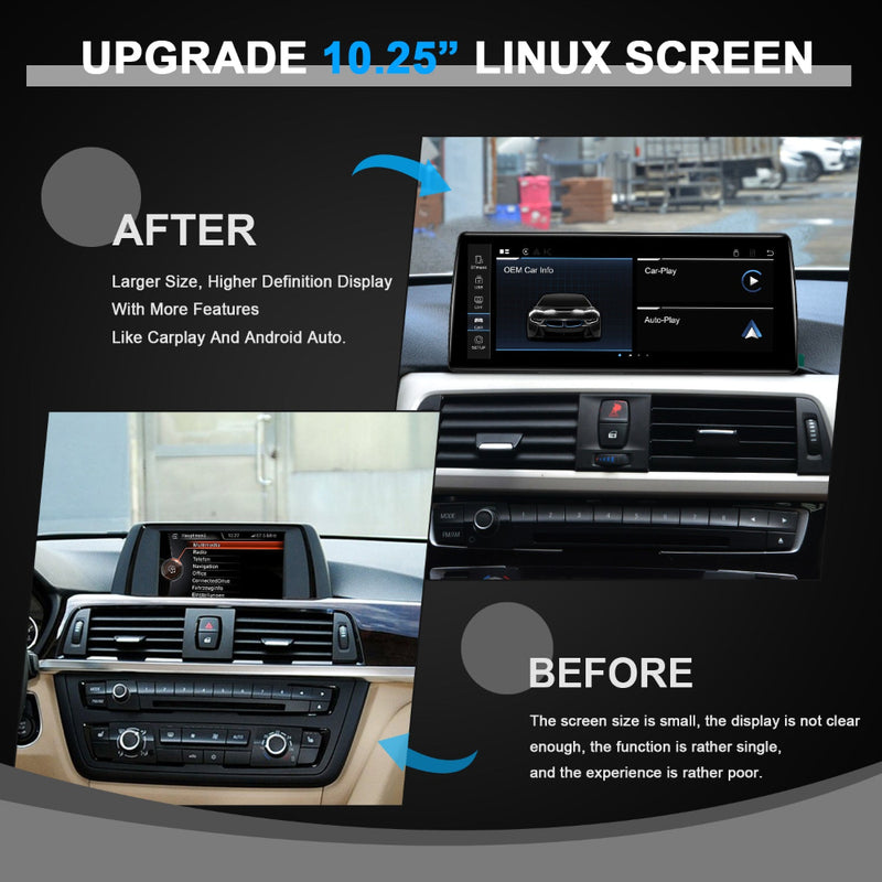 PEMP (9013) Ultra-Thin Linux 10.25" Screen for BMW F30 F31 F32 F33 F34 F35 NBT CIC Wired and Wireless Apple CarPlay (ios 26) Retrofit Android Auto use The OEM Bluetooth (2012-2017)