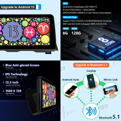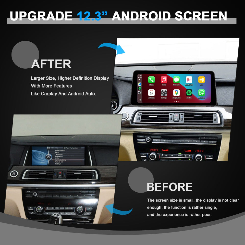PEMP (5357) for BMW 7 Series F01 F02 CIC Vertical Android 14 Blue Anti-Glare Screen, IPS 12.3" Snapdragon 680 8core CarPlay Android auto Multimedia Player (2009-2012)