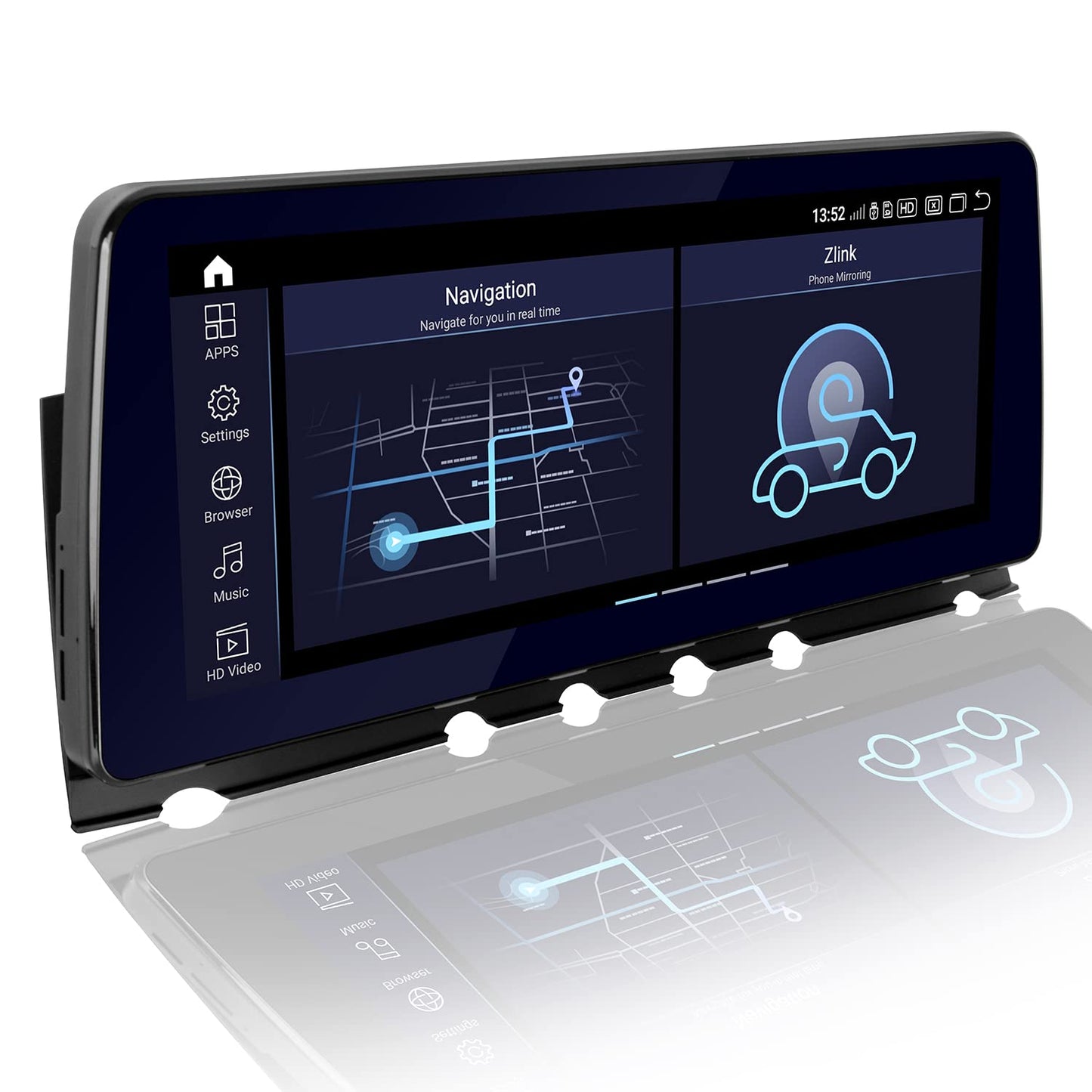 4. Multi-Point Capacitive Touch Screen, 12.3 HD IPS Display Screen, Resolution Up To 1920 * 720; Matching With PEMP AHD Reversing Camera, The Reversing Picture Will Be Very Clear.