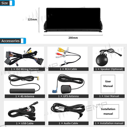 34. Android screen support GPS and SIM card, standard equipped with GPS and 4G antenna, the installation of the GPS and 4G antenna need to find the location of the installation and the location of the cable, the difficulty of installation is relatively difficult.