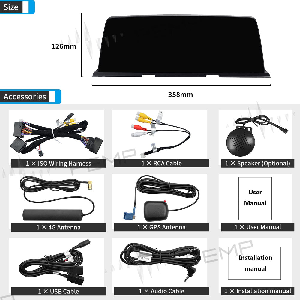 PEMP (5256) for BMW 6 Series F06 F12 NBT Android 10.25” HD Screen Screen, Android 14 Snapdragon 680 8core 8GB+128GB Apple CarPlay Android Auto Display (2013-2018) NBT