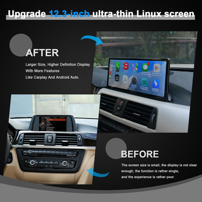 PEMP (9613) Ultra-Thin Linux 12.3" Screen for BMW F30 F31 F32 F33 F34 F35 NBT CIC Wired and Wireless Apple CarPlay Retrofit Android Auto use The OEM Bluetooth (2012-2017)