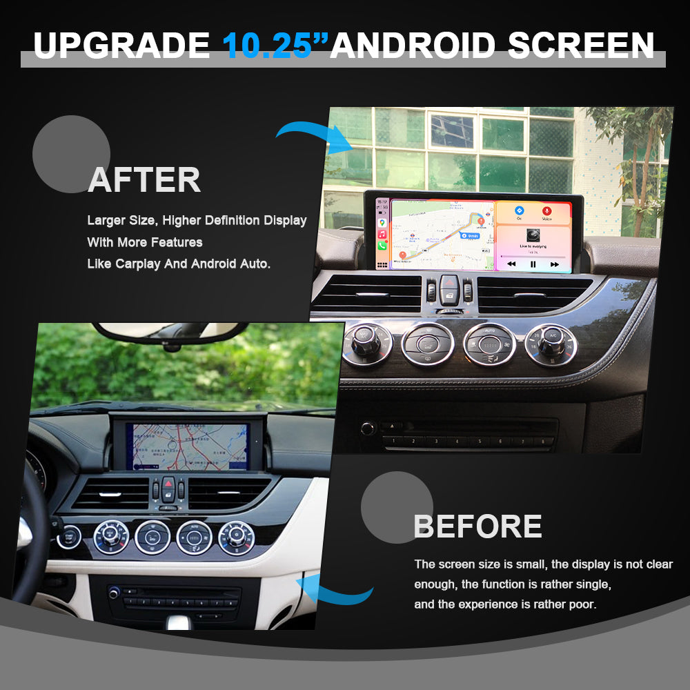 PEMP (5224) Android 14 10.25" IPS 1920X720 Screen for BMW Z4 E89 CIC CarPlay Android auto car Radio Upgrade Snapdragon 8 cores Snapdragon 680 8+128GB Android Screen (2009-2018)