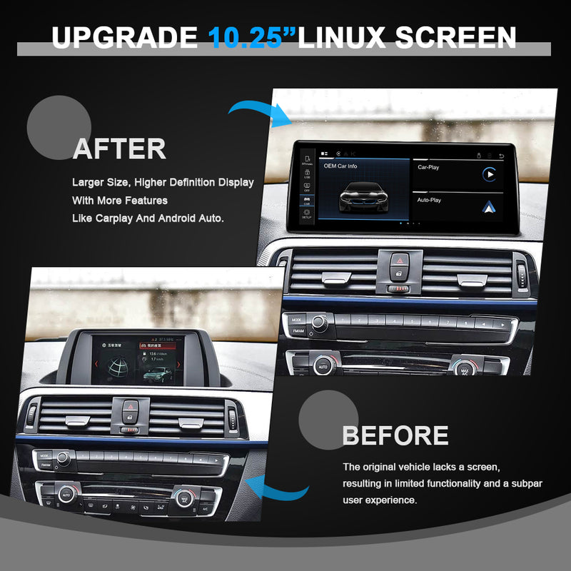 This product is only suitable for BMW EVO system. There is a 6PIN LVDS at the back of the OEM screen. It does not support CIC 4PIN and NBT system. If you buy the wrong system, you will not be able to install it.
